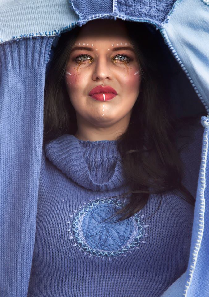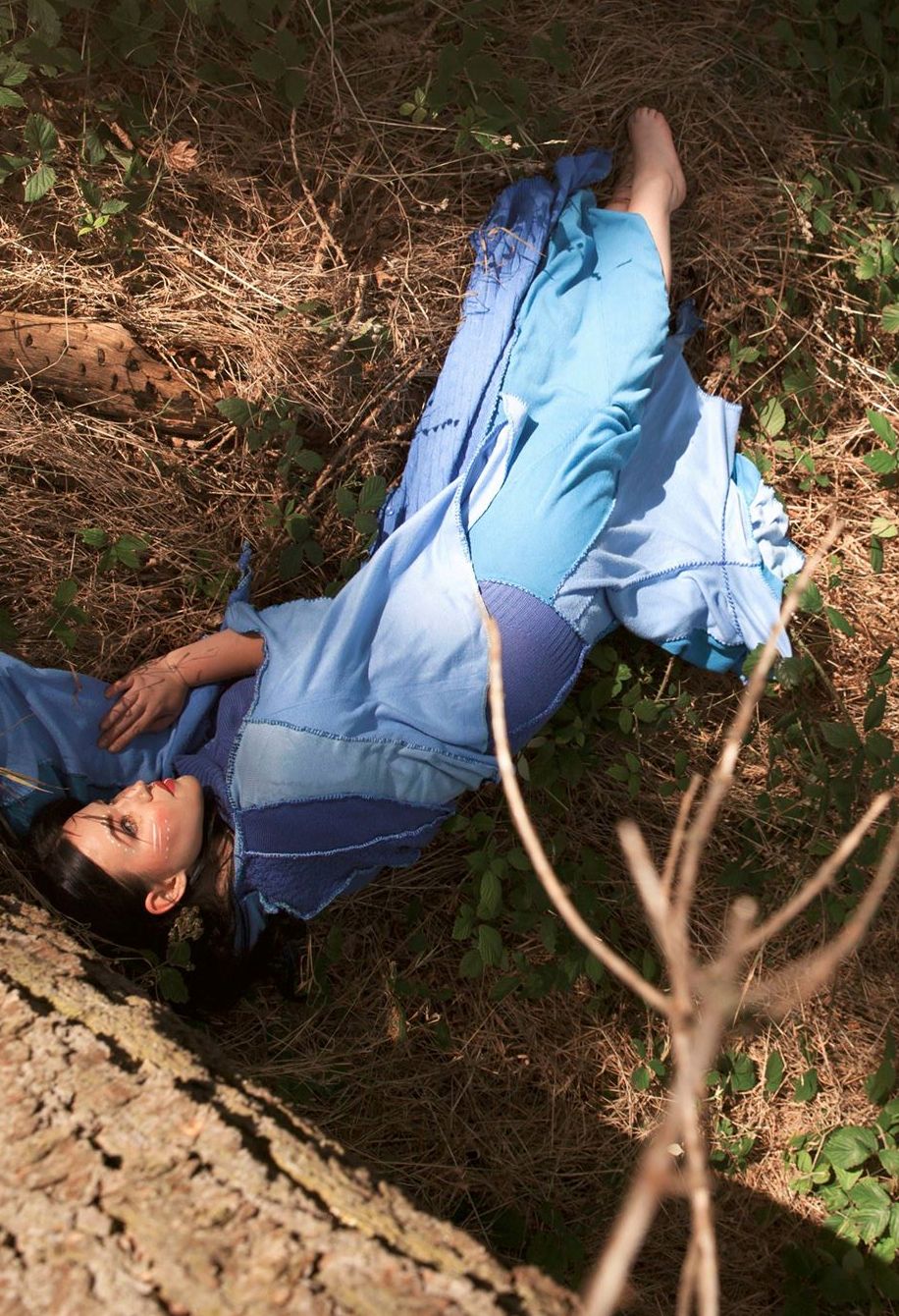 A ceremonial dress crafted entirely from recycled fabrics, created in the spirit of slow fashion and sustainability. Hand-stitched with care and intention, the dress is adorned with Auseklis—a traditional Slavic protective symbol believed to channel energy and offer spiritual protection. Every detail of this piece reflects conscious creation and reverence for ancestral wisdom.