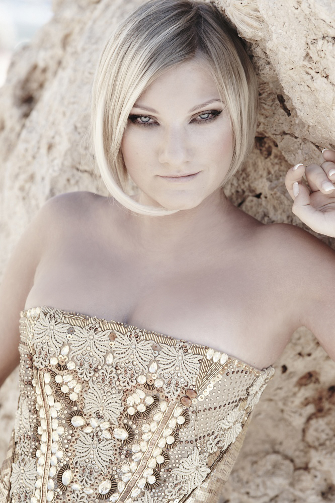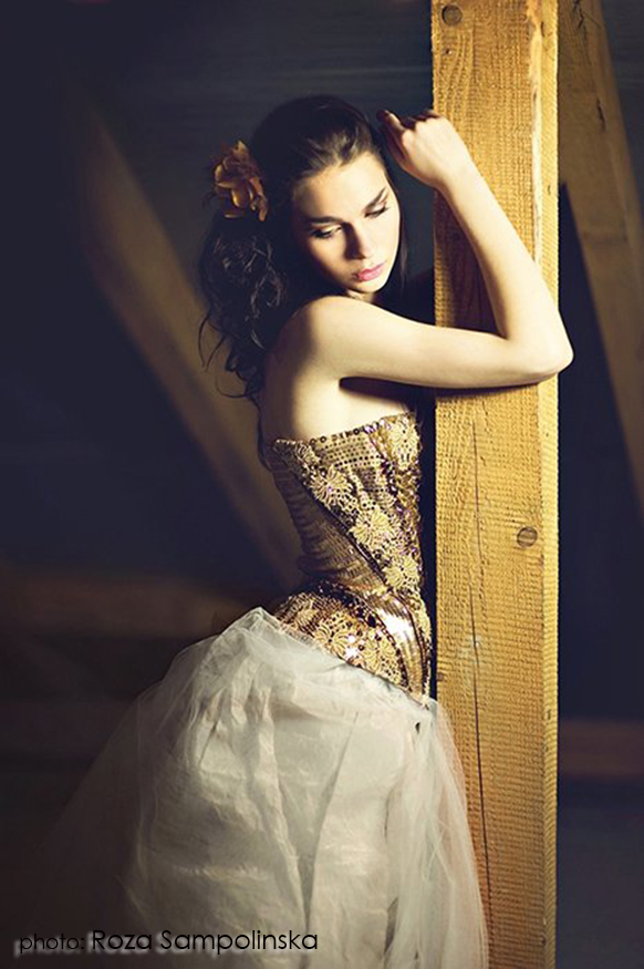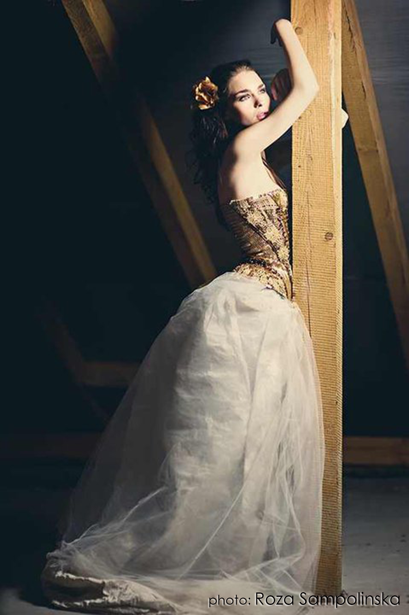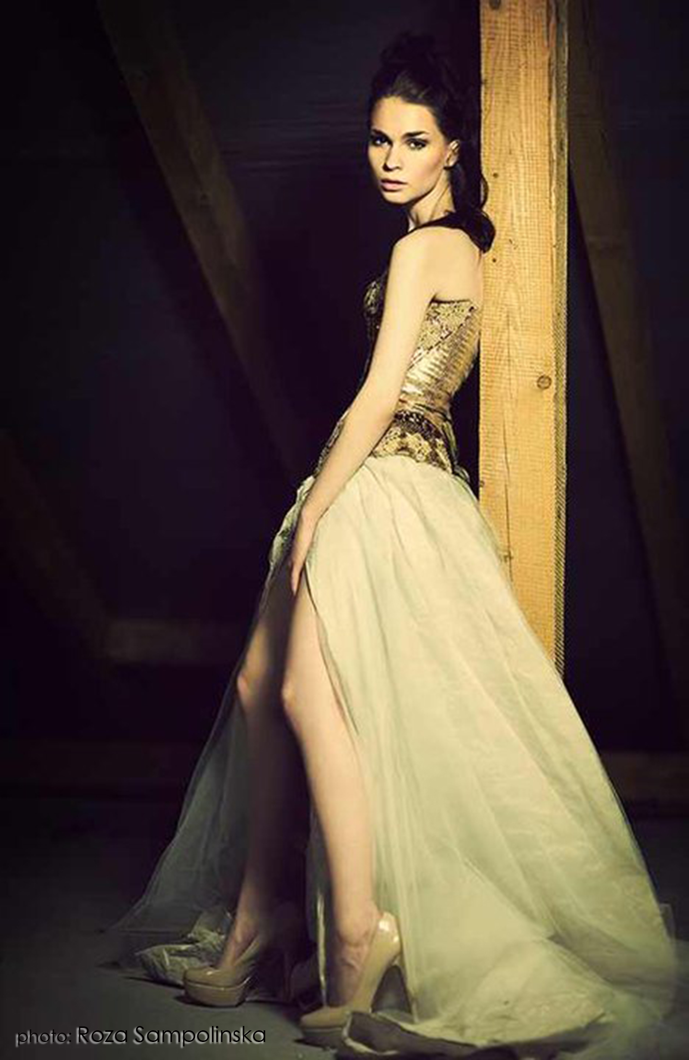 A luminous corset hand-decorated with intricate embroidery, shimmering sequins, delicate beads and Swarovski crystals in a rich spectrum of gold tones. This labor-intensive piece, created with deep dedication for Justyna Steczkowska, is one of my proudest works. Designed to dazzle, it shines both on stage and in editorial photo shoots, embodying strength, elegance and artistic precision.