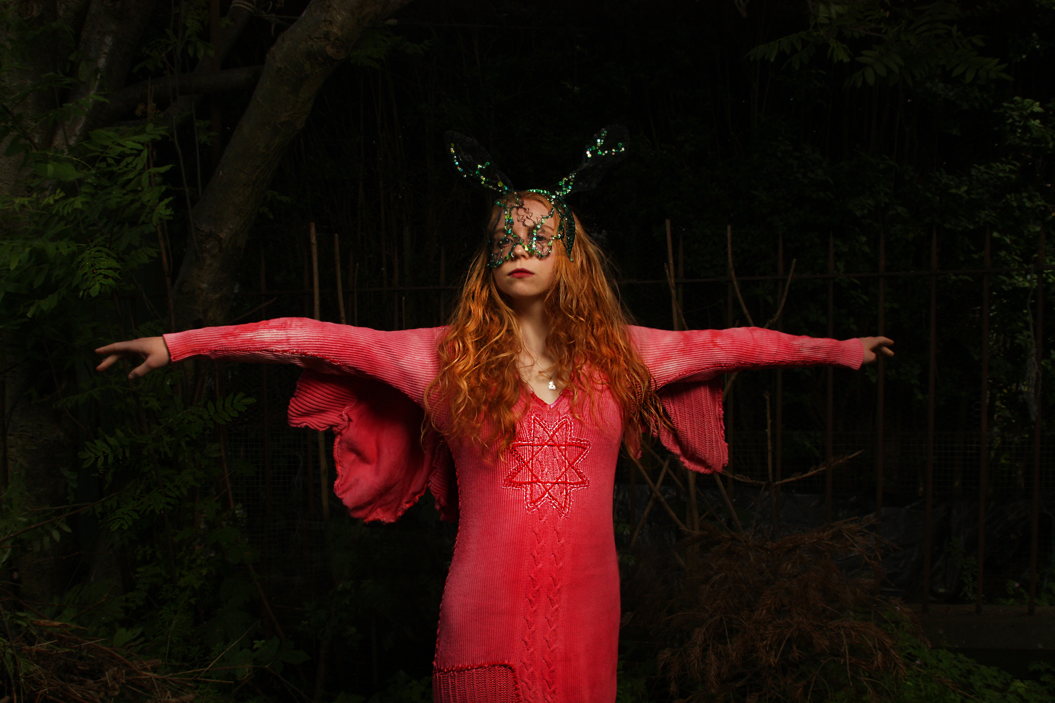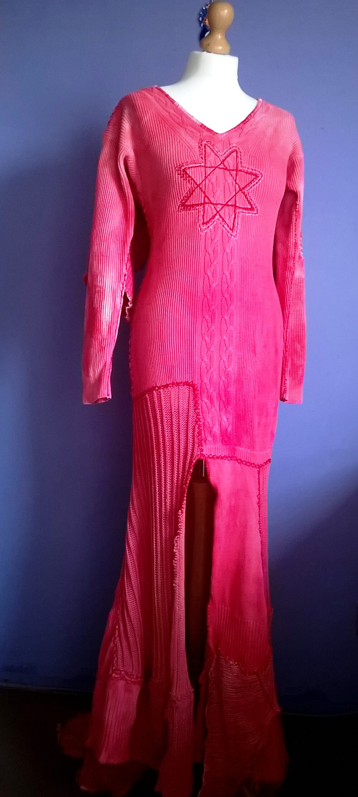 Hand-dyed in a warm pink tone and entirely hand-sewn, this ceremonial dress is made from recycled, pure cotton. Created in the spirit of slow fashion and intentional craftsmanship, it features an embroidered protective symbol on the front — a nod to Slavic traditions and personal empowerment.