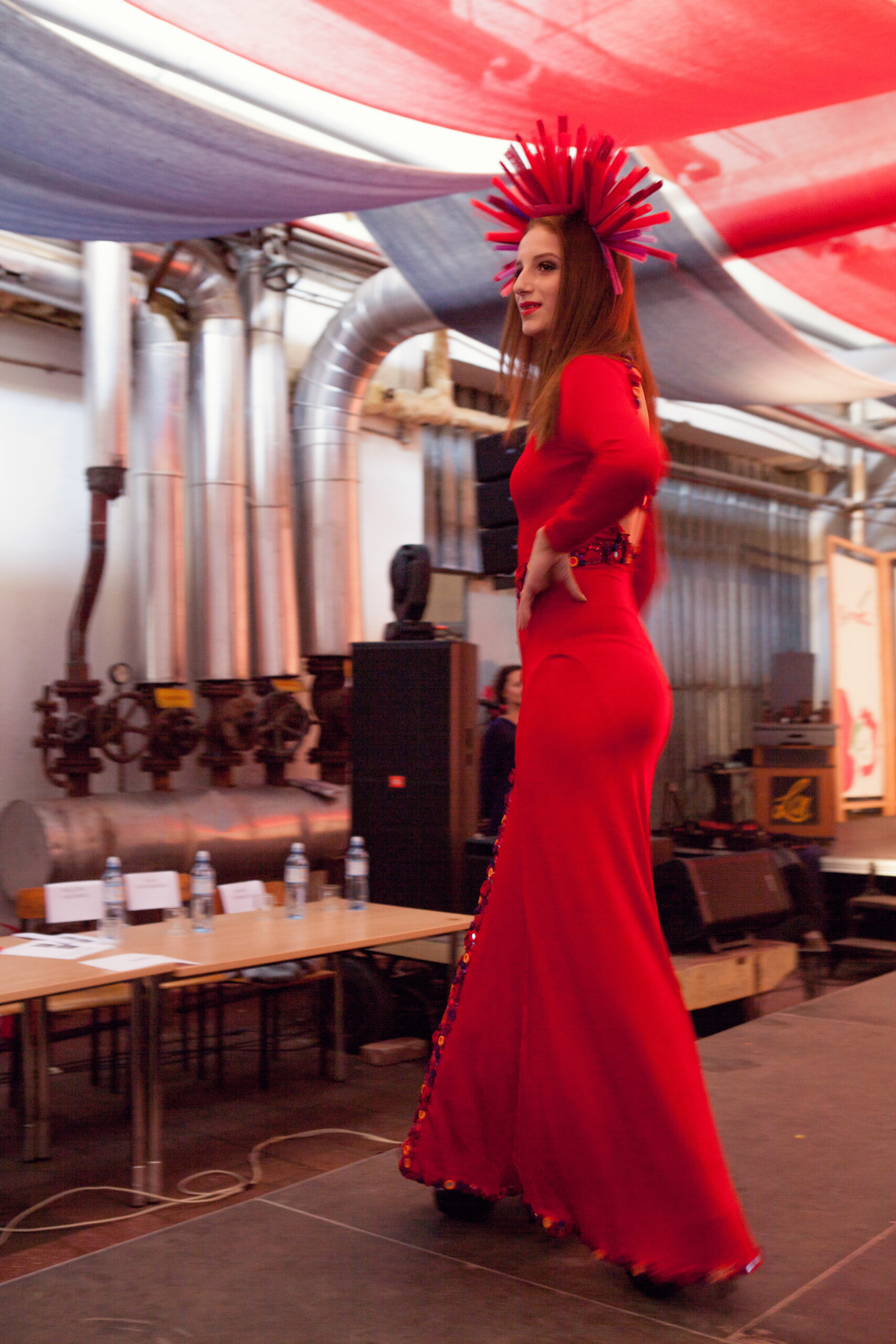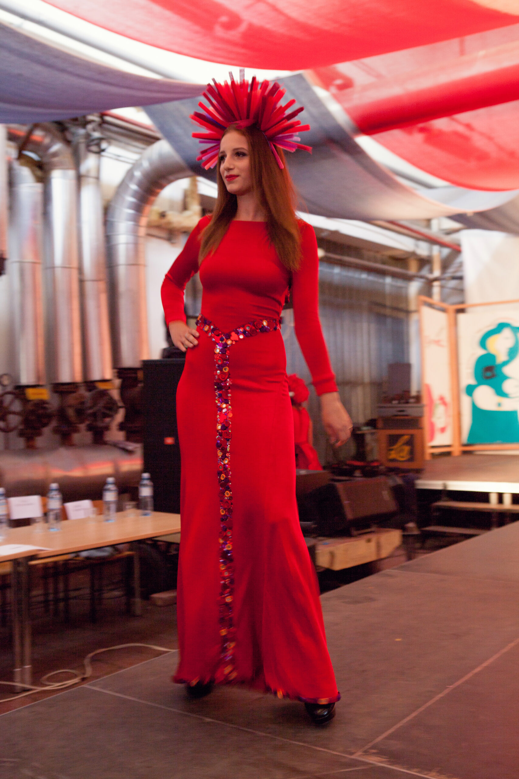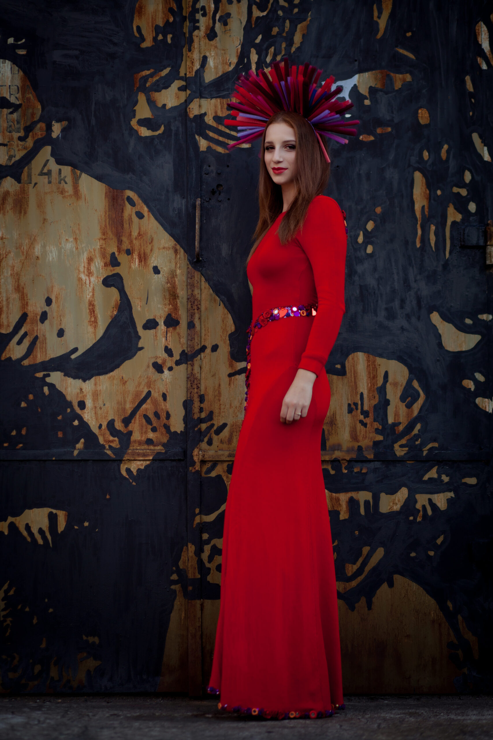 This deep red dress was designed especially for singer Justyna Steczkowska, drawing inspiration from Celtic symbolism and ornamental patterns.