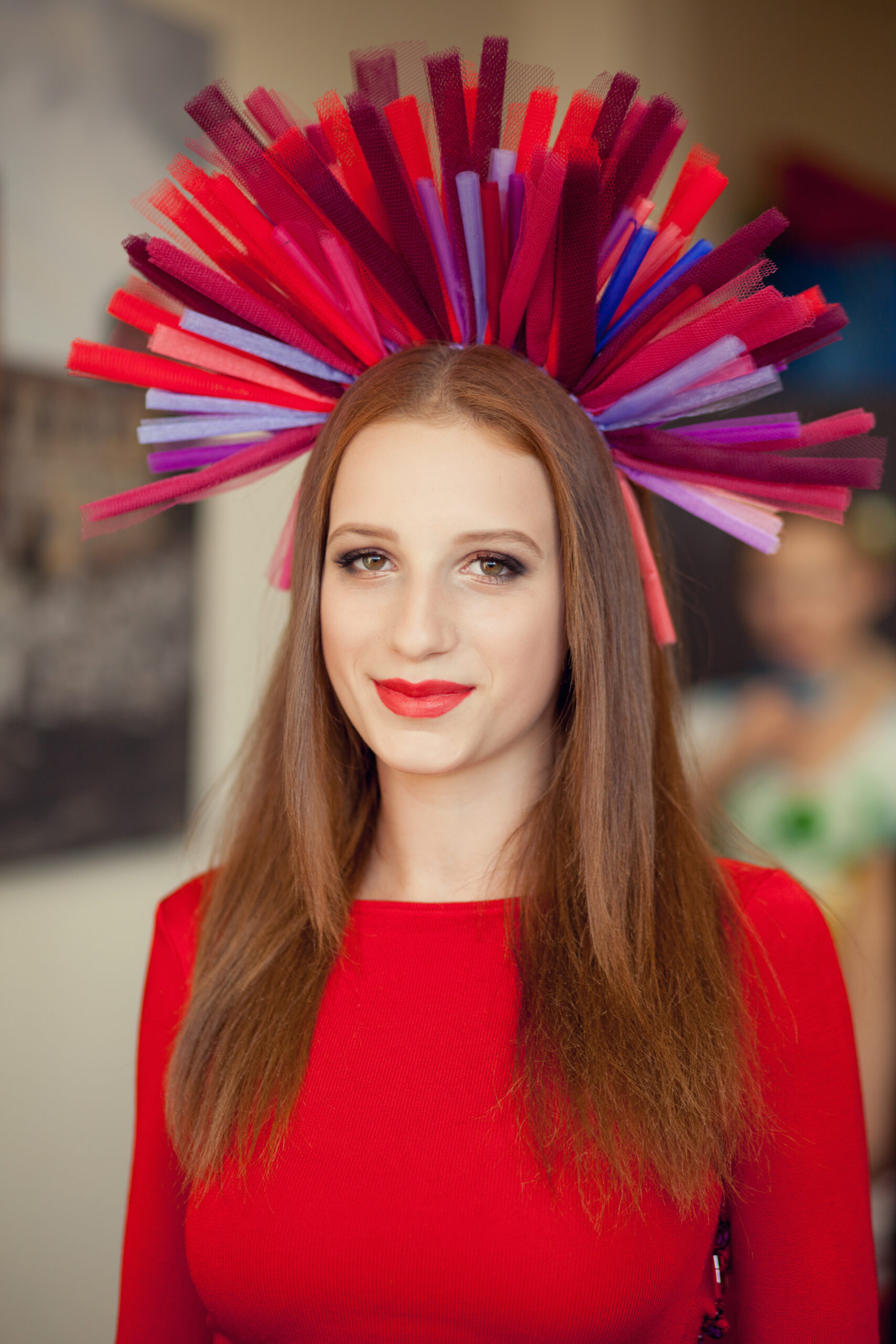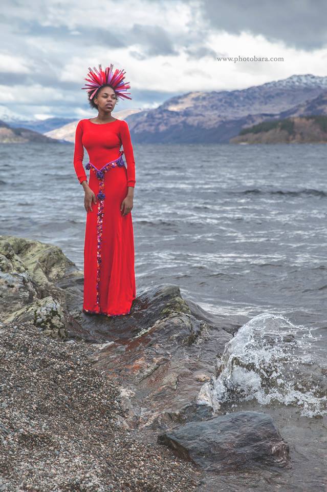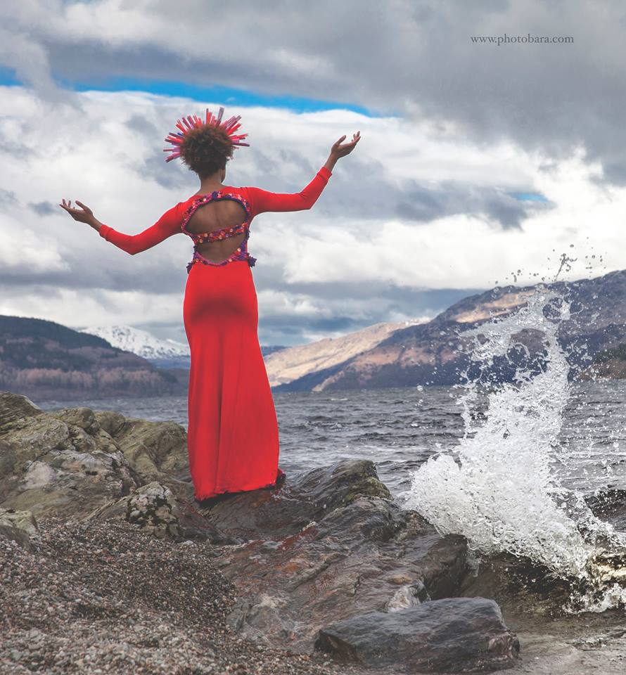 This deep red dress was designed especially for singer Justyna Steczkowska, drawing inspiration from Celtic symbolism and ornamental patterns.