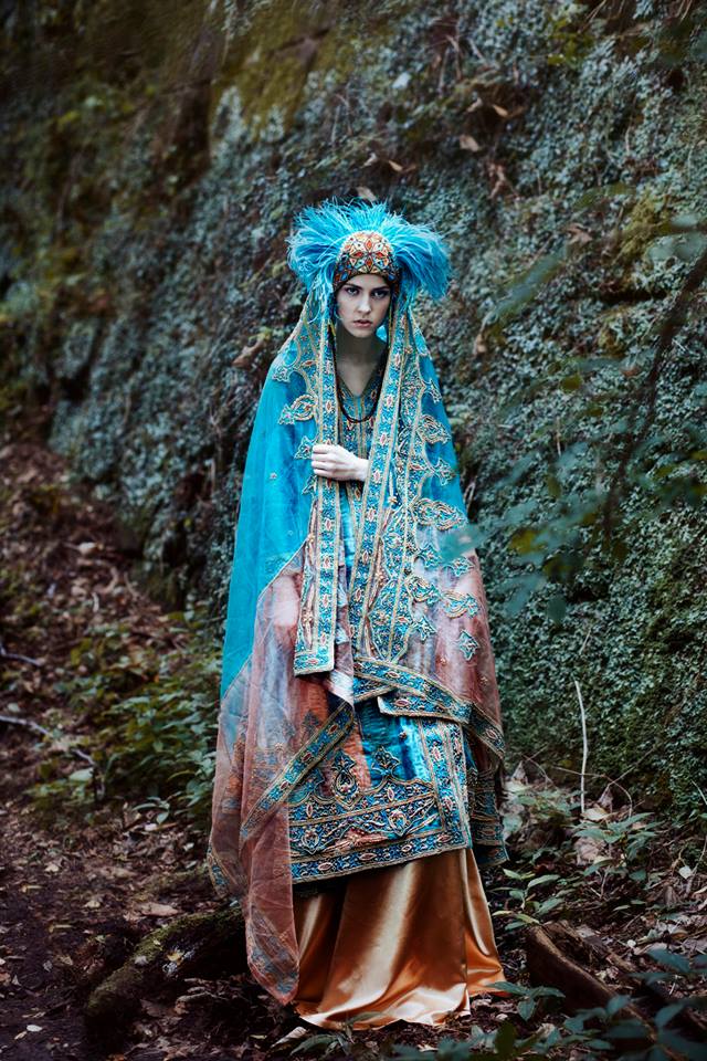 Created during my Fashion & Textile studies in Edinburgh, this costume draws inspiration from both the rich ornamentation of Eastern cultures and the iconic image of the holy Madonna. The design plays with contrast — sacred and avant-garde — blending a flowing, turquoise base with layered textures and symbolic detailing. The look was completed with an unconventional headpiece I called “The Lemur,” intentionally disrupting the traditional, saintly aesthetic and adding a bold, surreal twist.